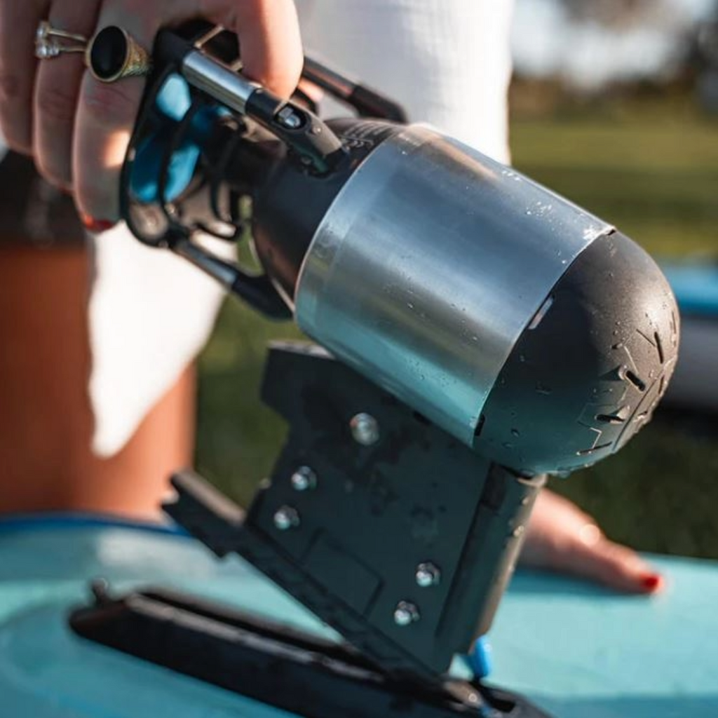 Whether you're powering a kayak, paddle board, dinghy, or inflatable boat, the K-1 Outboard Kit is your all-in-one solution for effortless propulsion. The kit includes the K-1 Motor, the slim and lightweight PP-378 Power Pack, a wireless remote, a wall charger (optional solar charger available), a kill switch, and all the hardware needed to get you on the water in minutes.