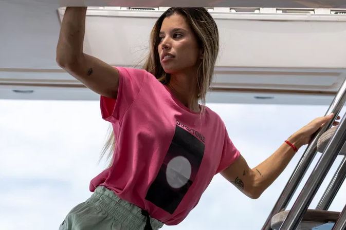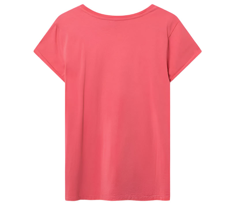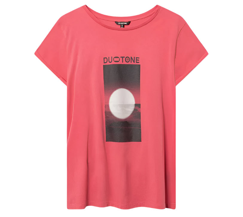 Your essential Tee SS True for women, featuring an exciting duotone logo design, has a relaxed fit, medium length, and comfortable crew neck opening. This t-shirt is available in the pink colorway to match your style and is made from breathable organic cotton. Perfect for complementing your beach look or everyday wear.