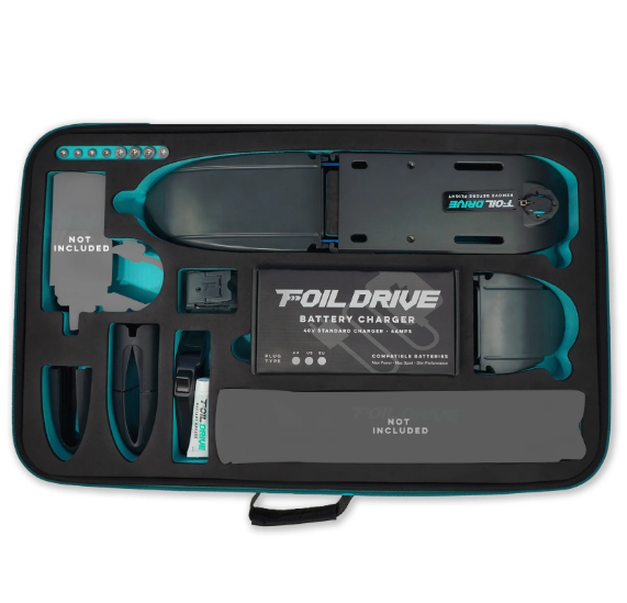 The kit includes everything you need to turn your existing foil and board into an electric assisted foiling machine: