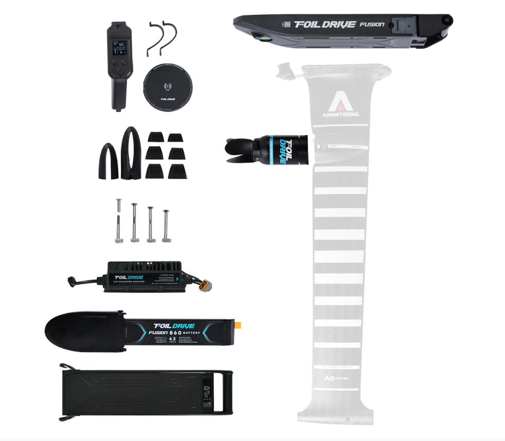 The Foil Drive Fusion x Armstrong Integrated Mast bundle, pairs the powerful, long-runtime Fusion system with Armstrong mast for the ultimate hybrid setup. Enjoy the freedom to ride as an efoil alternative or switch to a high-performance Assist with ease. One system, endless pairing possibilities.