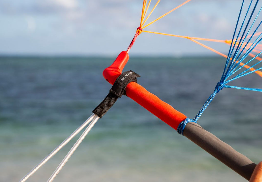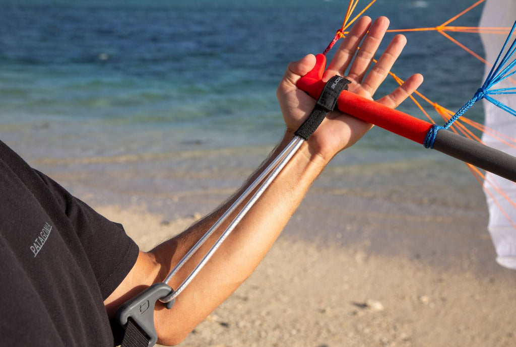 Attachment System: Self-tightening ‘loop-on’ design, secured with Velcro. Fit to a wing handle/boom or parawing control bar in seconds. No components to attach/remove