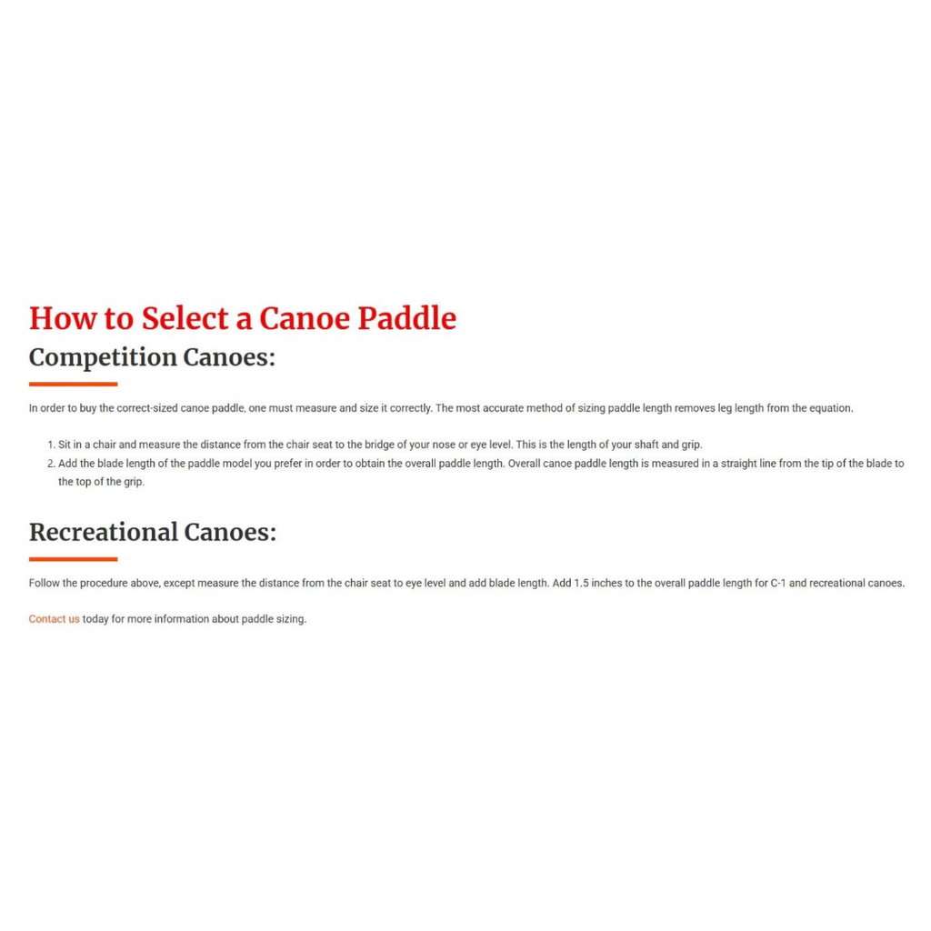 In order to buy the correct-sized canoe paddle, one must measure and size it correctly. The most accurate method of sizing paddle length removes leg length from the equation.